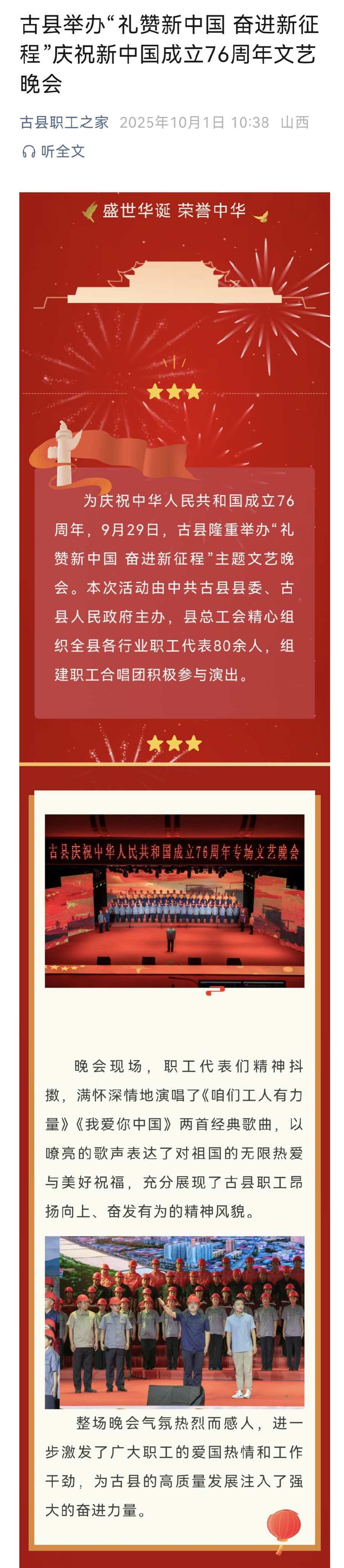 古县举办“礼赞新中国 奋进新征程”庆祝新中国成立76周年文艺晚会